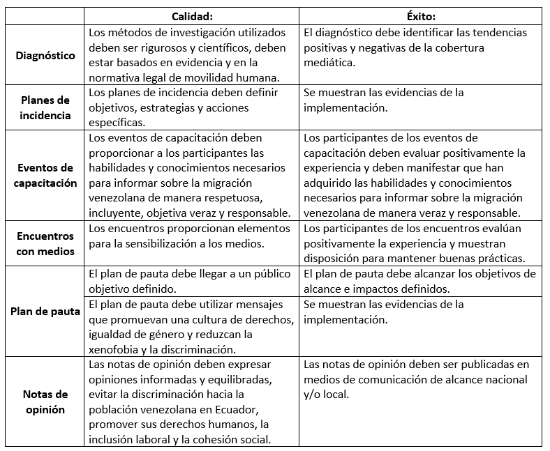 Promover una narrativa mediática más objetiva, libre de discriminación y xenofobia que incida favorablemente en la opinión pública ecuatoriana frente al fenómeno de la migración venezolana en Ecuador.