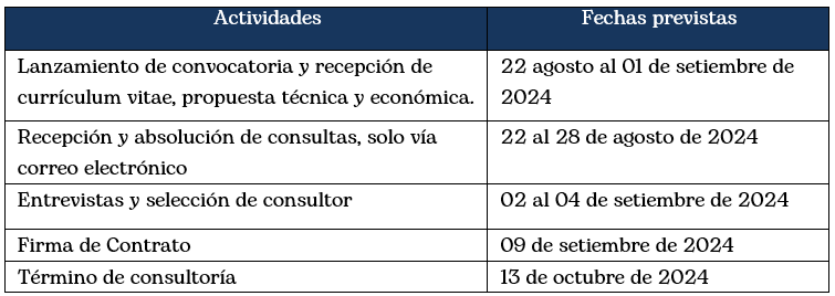 Fecha límite de presentación de consultas: 28 de agosto del 2024