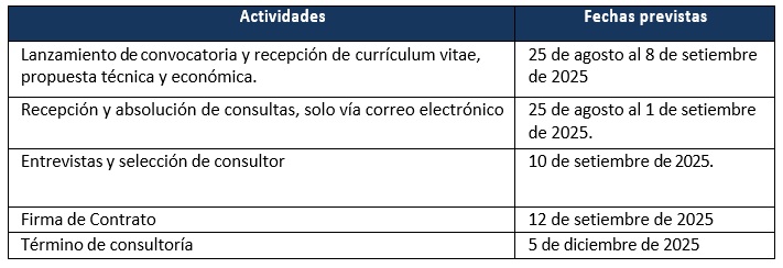 Fecha límite de presentación de consultas: 1 de setiembre del 2025.