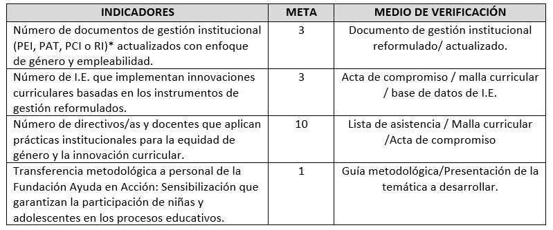 Instituciones educativas públicas de nivel primario y secundario en territorios priorizados por Ayuda en Acción (Lima, La Libertad y Apurímac).