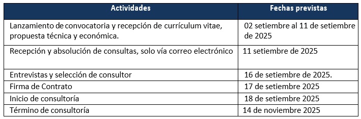 Fecha límite de presentación de consultas: 11 de setiembre de 2025.