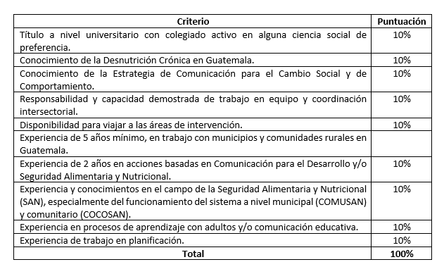 Promover y acompañar la implementación de actividades de CCSyC a nivel municipal y comunitario, realizando coordinaciones con líderes comunitarios y formación de agentes de cambio por medio de metodologías participativas, así como realizar el monitoreo comunitario con enfoque de Conocimientos, Actitudes y Prácticas (CAP). Además, de realizar las actividades que le sean requeridas por parte del delegado departamental de SESAN y demás involucrados en el marco de la Comunicación para el Cambio Social y de Comportamiento.