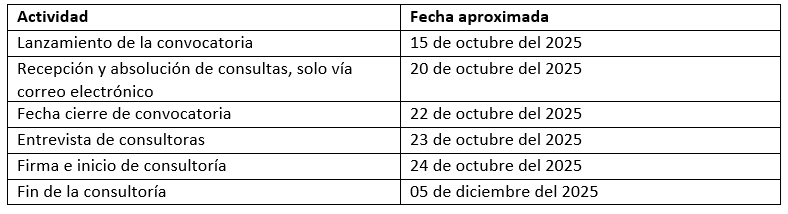 Para lo cual el plazo establecido para realizar la consultoría es de noventa (40) días calendario, a partir de la firma del contrato.
