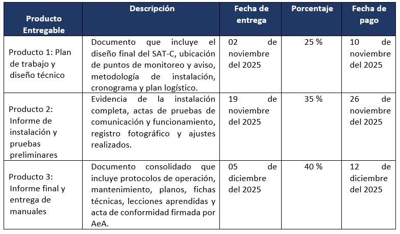 El pago por el servicio de Consultoría es a todo costo, incluido impuestos de Ley, se realizará contra entrega de productos y después de la aprobación por parte del supervisor. El pago se realizará en tres (03) armadas según el siguiente detalle.