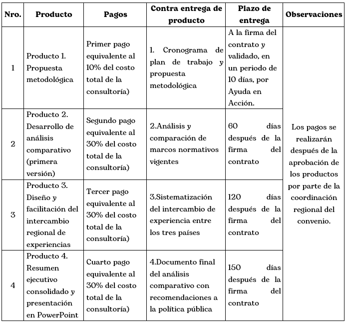 Para preguntas acerca de los TDR, se deberá enviar una comunicación al siguiente correo electrónico hasta el 20 de octubre del 2025: aeras@ayudaenaccion.org, y myuvely@ayudaenaccion.org