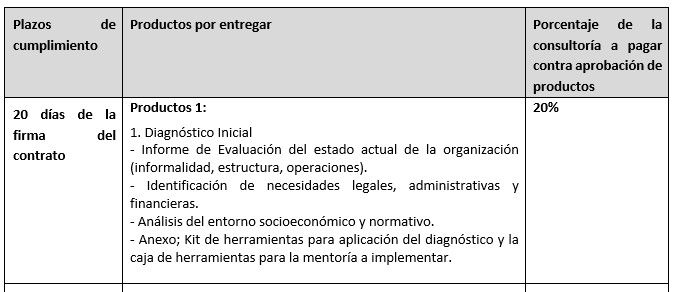 En este sentido presentamos términos de referencias para servicios profesionales que diseñen y faciliten metodologías de mentorías destinadas a acompañar “in situ” a mujeres y juventudes asociadas cooperativas y MiPymes vinculadas a la cadena láctea, que fortalezcan sus competencias de gestión empresarial, para escalar mercados / comercialización y aumentar los ingresos económicos. Además, se espera continuar contribuyendo a que mujeres y juventudes en situación de vulnerabilidad por pobreza y movilidad humana, cuenten con habilidades para la producción competitiva y sostenible, que facilite su inserción en las dinámicas de mercados inclusivos y asociativos, y por consiguiente el arraigo en las comunidades de origen.