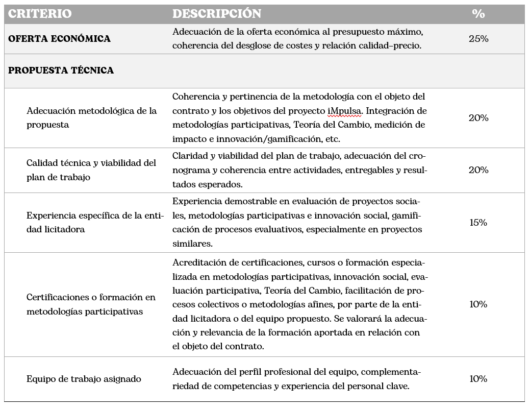 El objeto del contrato de servicios es diseñar y desarrollar, mediante un proceso participativo con el alumnado, una caja de herramientas de evaluación con base de gamificación, adaptada al contexto del proyecto de orientación sociolaboral y alineada con las necesidades, expectativas y experiencias de los y las jóvenes participantes.