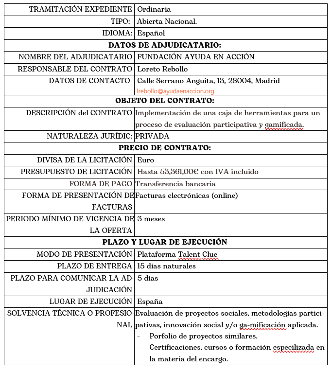 para la subcontratación de servicios para la Implementación de una caja de herramientas para un proceso de evaluación participativa y gamificada