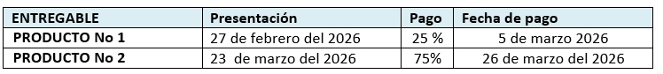 El calendario del servicio a contratar deberá formar parte de la propuesta, integrando un detalle de las tareas a realizar así como deadlines. En cualquier caso, el objetivo es que la totalidad de los productos hayan sido entregados a más tardar 28 de noviembre del 2026.
