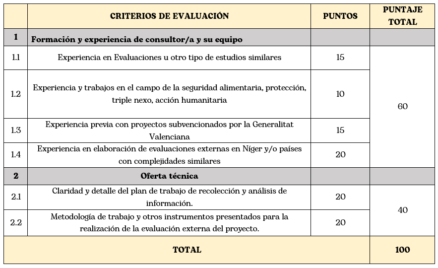 En el título de la consultoría en Talent Clue se identificará como: Evaluación Externa del Proyecto GVA AH Níger 2024.