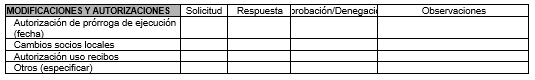 Modificaciones, autorizaciones y prórrogas