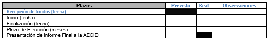 Plazos previstos y reales