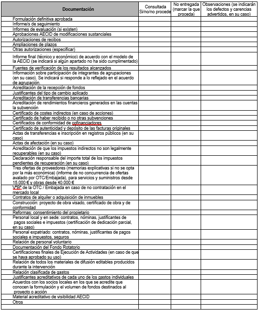 2.1. Revisión del informe de seguimiento y de la cuenta justificativa completa de una subvención de la AECID de la PAC 3.
