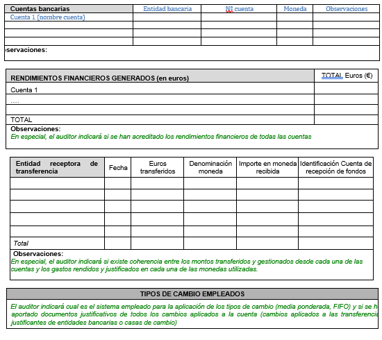 El informe de auditoría final se hará conforme al ANEXO 1 basado en el modelo que establece la ORDEN EHA/1434/2007, de 17 de mayo, por la que se aprueba la norma de actuación de los auditores de cuentas en la realización de los trabajos de revisión de cuentas justificativas de subvenciones, en el ámbito del sector público estatal, particularizado para las subvenciones de la AECID.