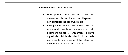 Producto 6: Presentación final a contrapartes beneficiarias en un taller de devolución de resultados del diagnóstico, con una ruta de mejora.