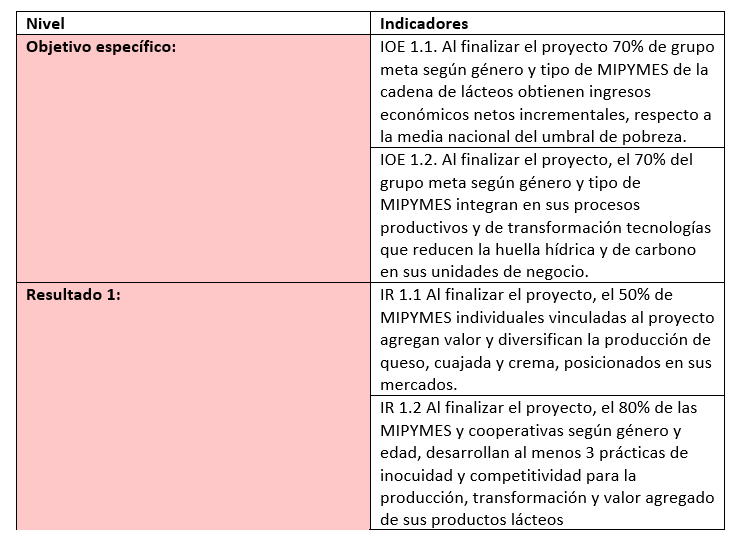 Una cadena láctea territorialmente articulada y resiliente en Madriz, que cumple estándares de inocuidad y calidad, reduce la dependencia a la estacionalidad de acopios, y capitaliza mecanismos de pago por calidad; con MIPYMES y productores incrementando y estabilizando sus ingresos, abasteciendo mercados formales (incluida la línea de rosquillas somoteñas) con insumos lácteos estandarizados, y sosteniendo capacidades locales (gobernanza, asistencia técnica, controles de calidad) para escalar y/o replicar el modelo en el territorio.